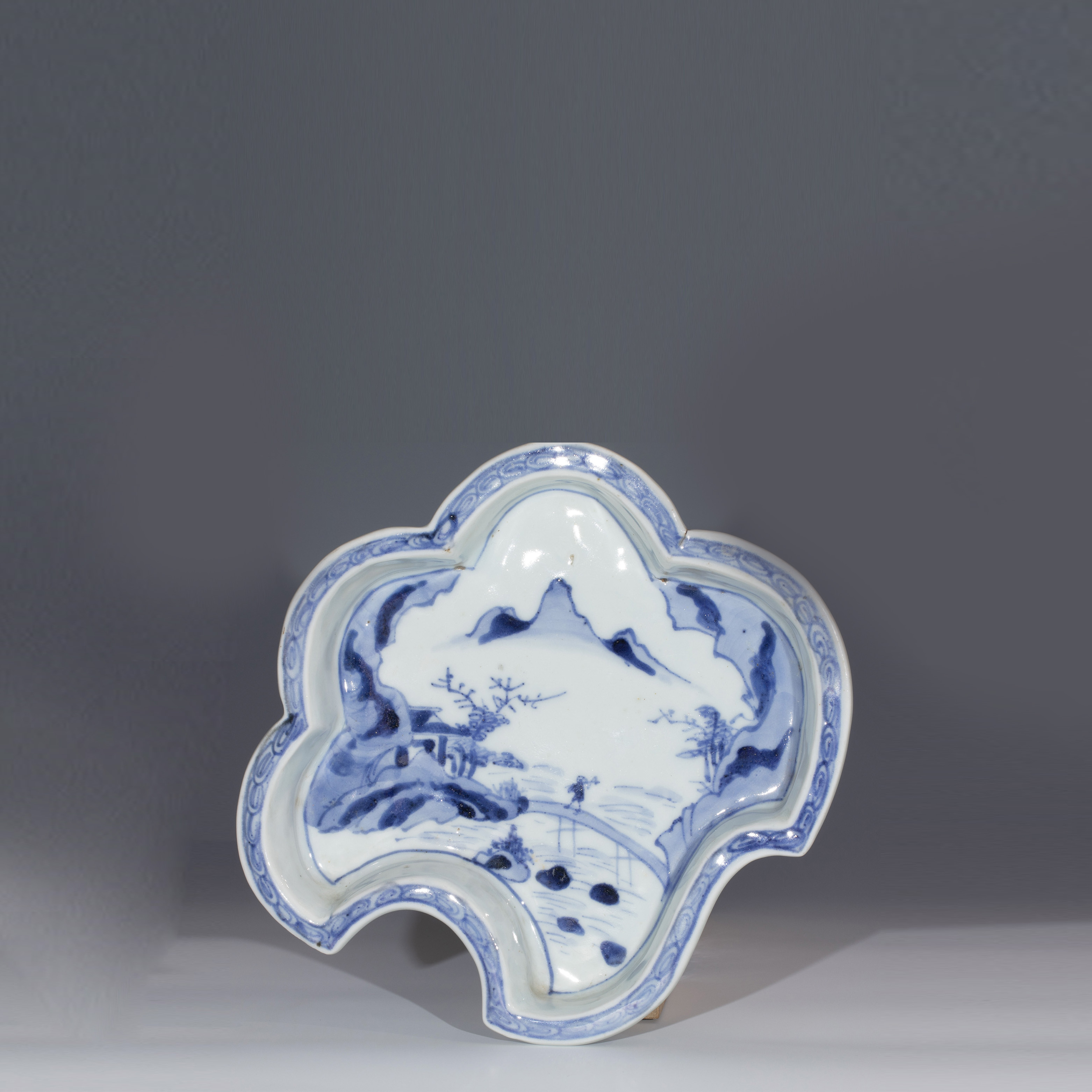 康熙/青花/开光/折枝纹花口/杯碟一套