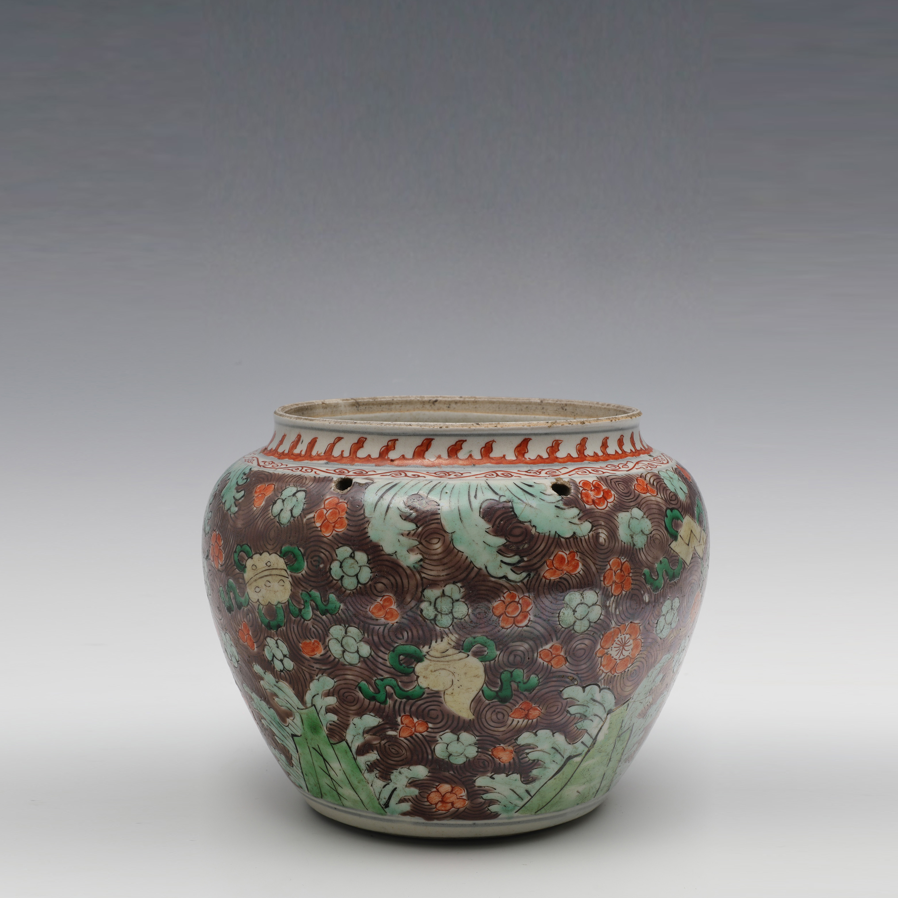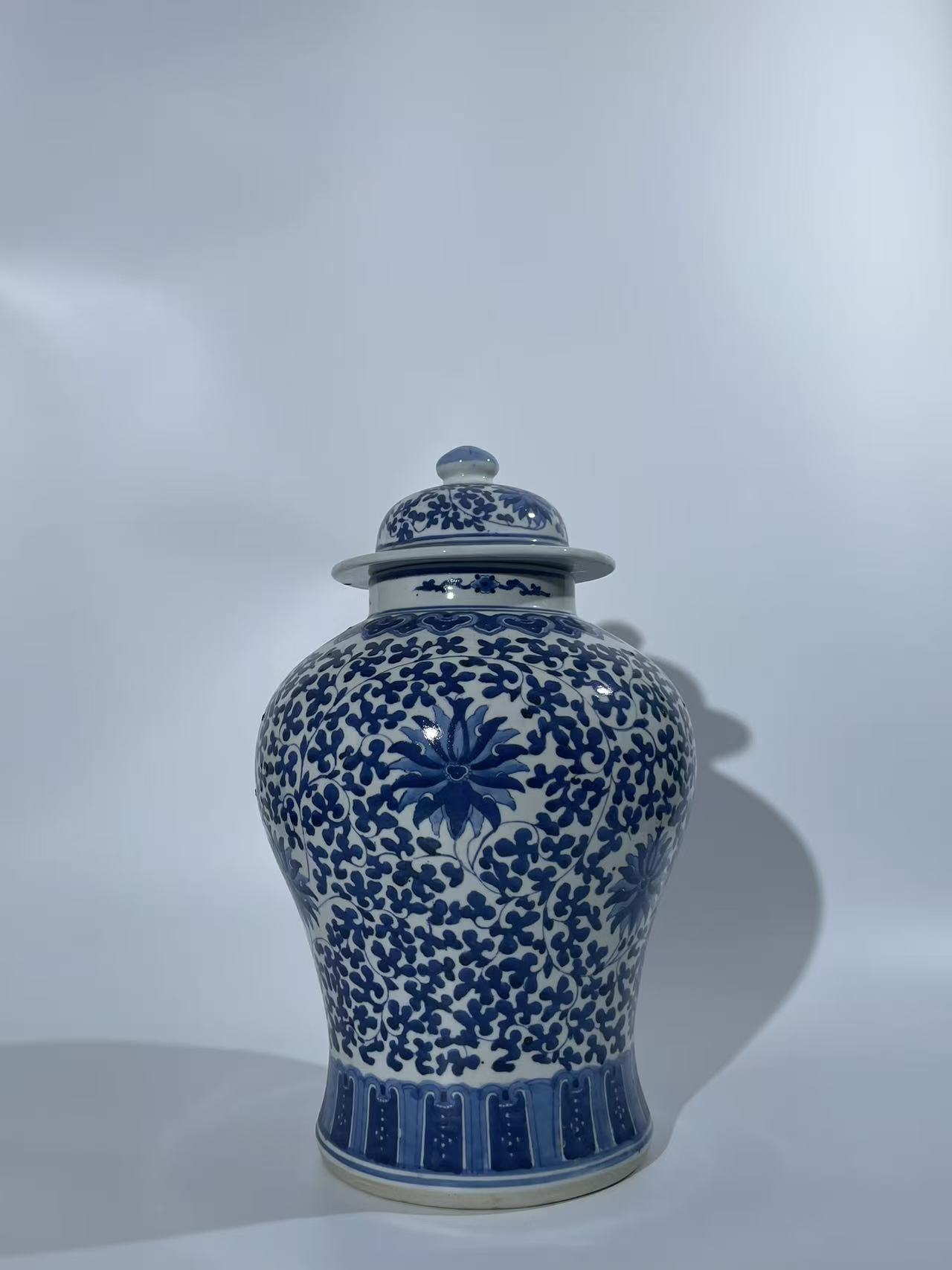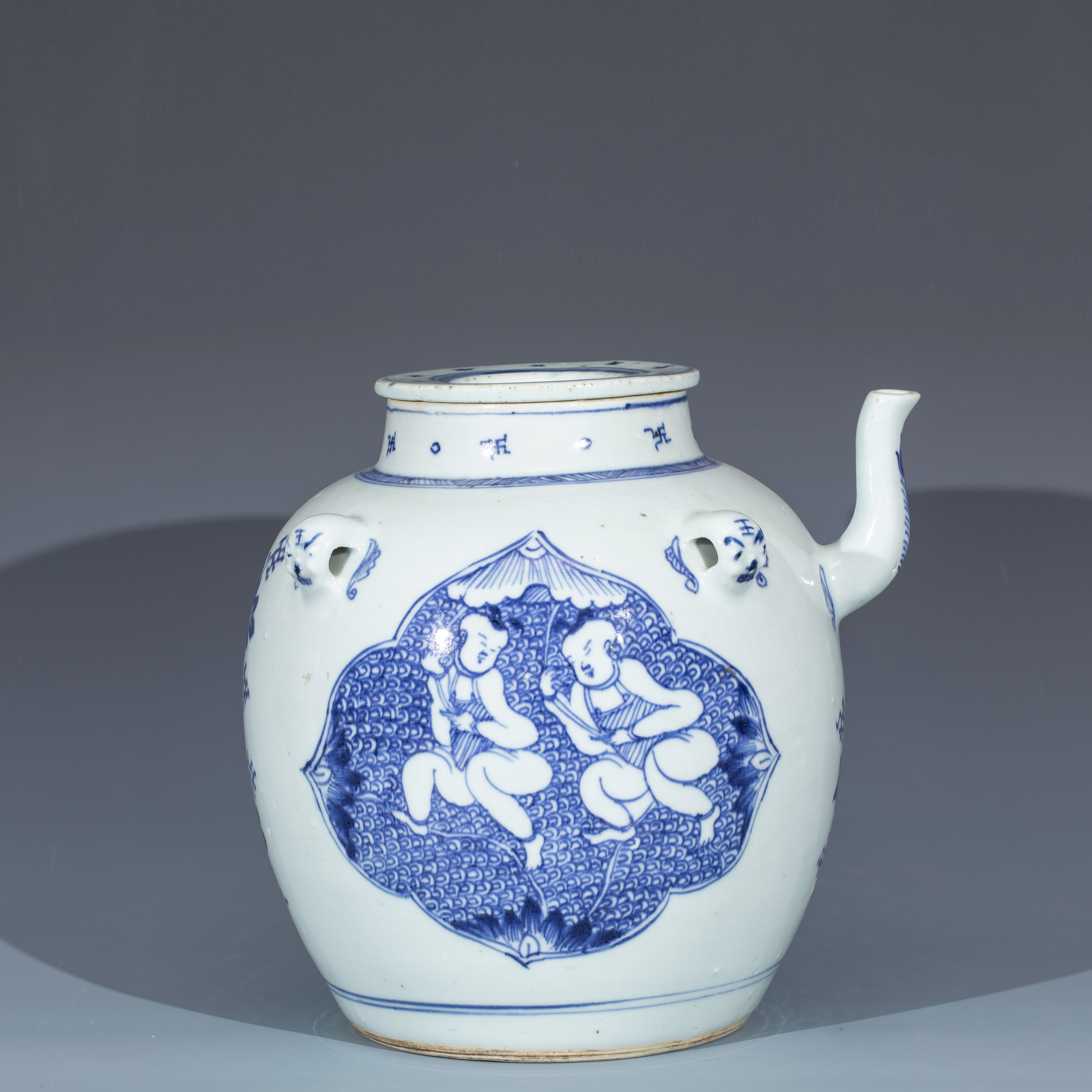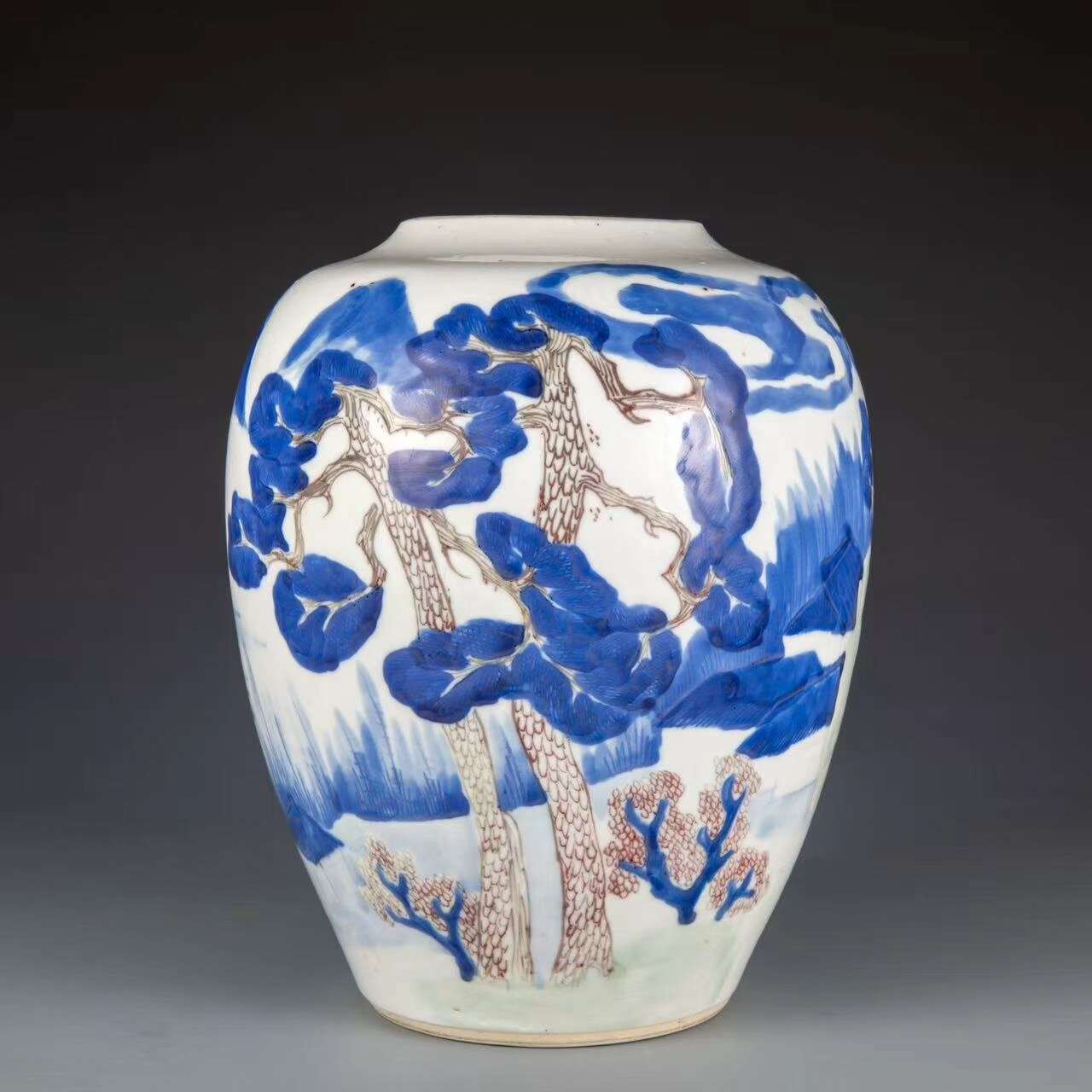 清康熙青花蛱蝶开窗福禄寿纹罐