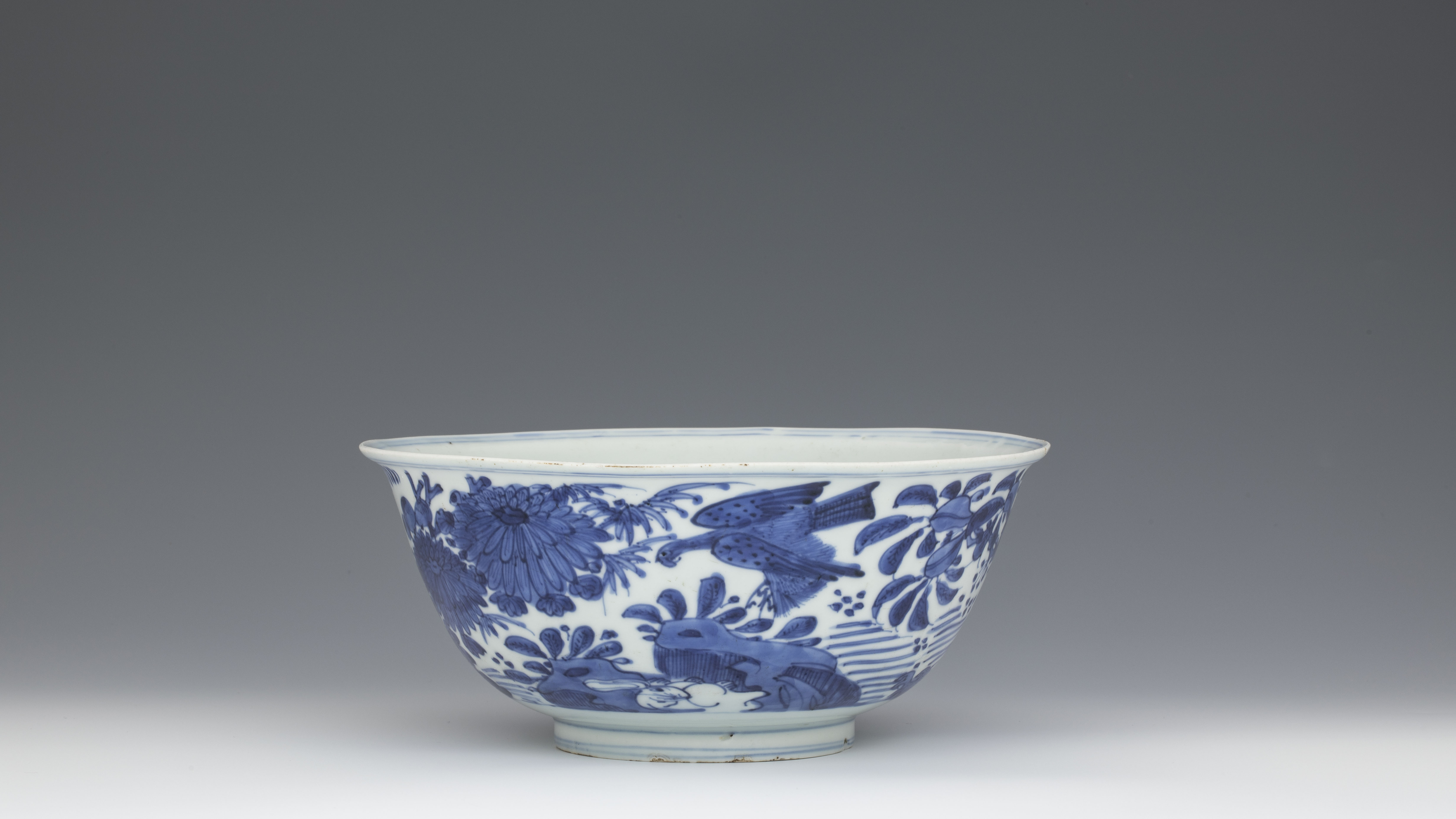 大英博物馆同款明万历青花苍鹰猎兔纹碗