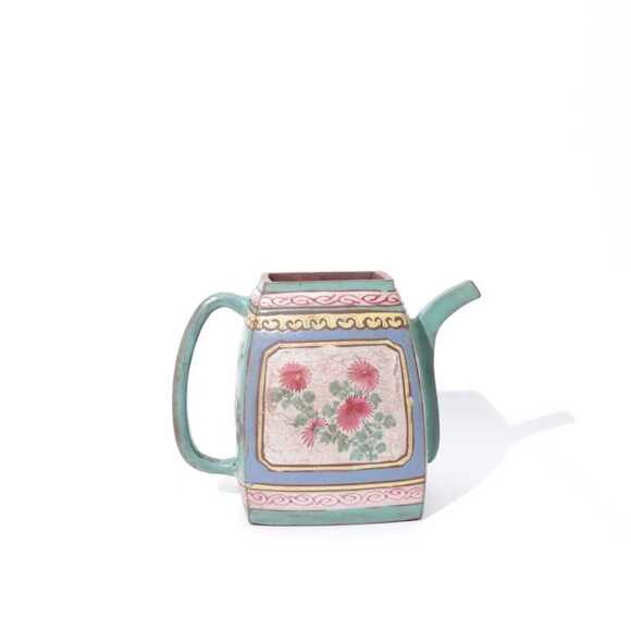 民国乾隆年制款粉彩堆刻山水人物图笔筒